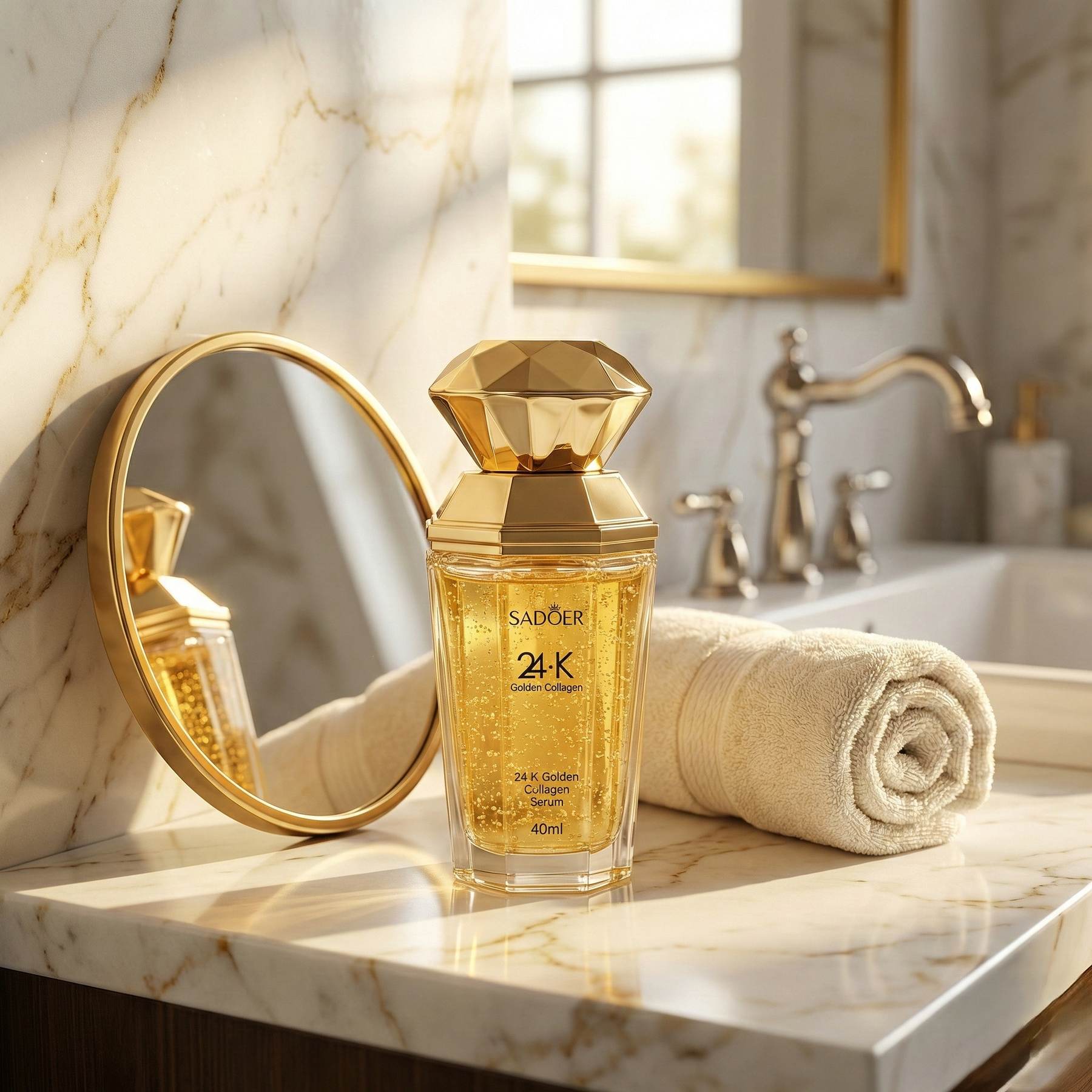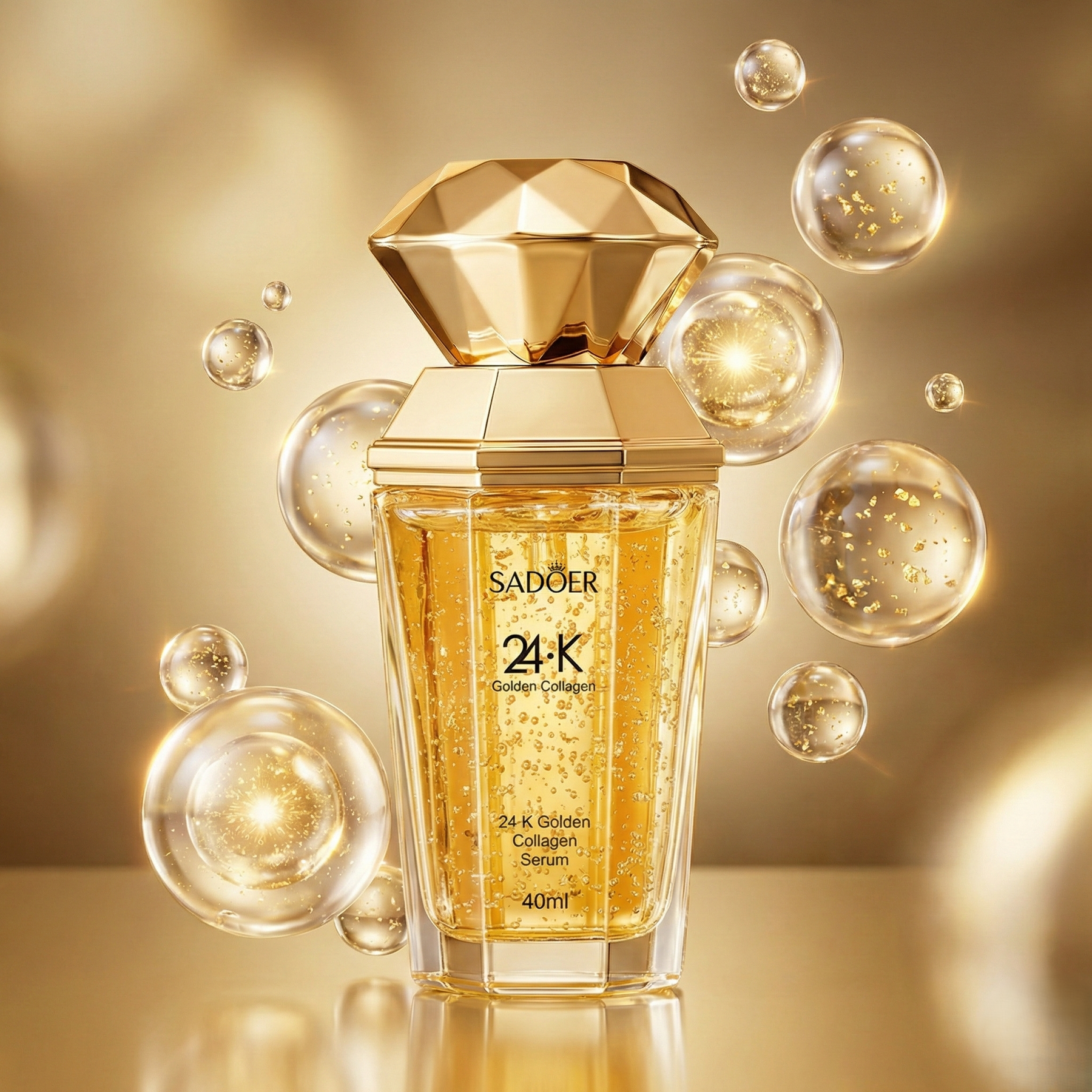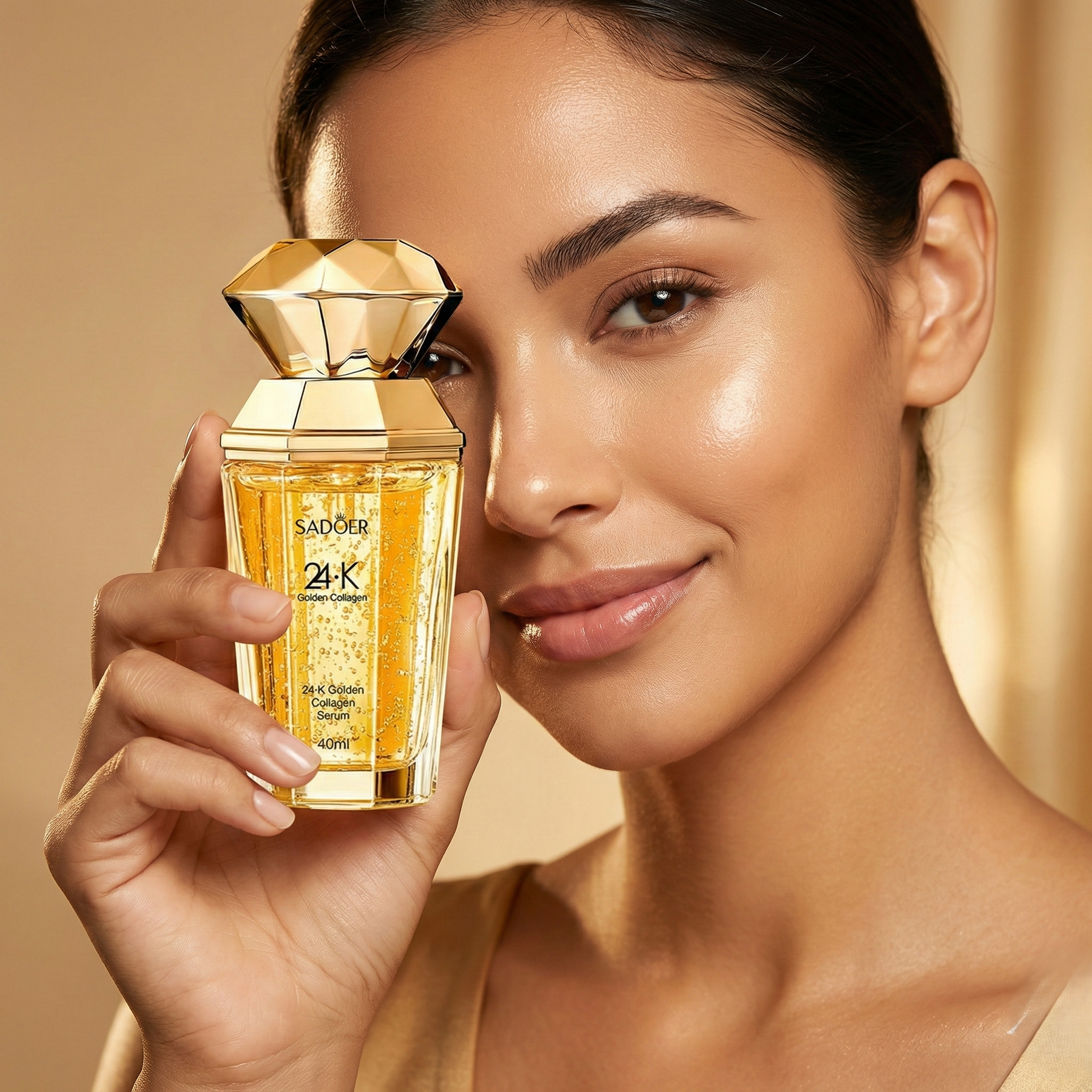El Sérum de Colágeno Dorado 24K con Ácido Hialurónico es un tratamiento facial avanzado diseñado para mejorar visiblemente la firmeza, elasticidad y luminosidad de la piel. Su fórmula concentrada combina colágeno dorado con agentes altamente hidratantes que ayudan a rellenar la piel, suavizar líneas finas y mejorar la textura general del rostro.